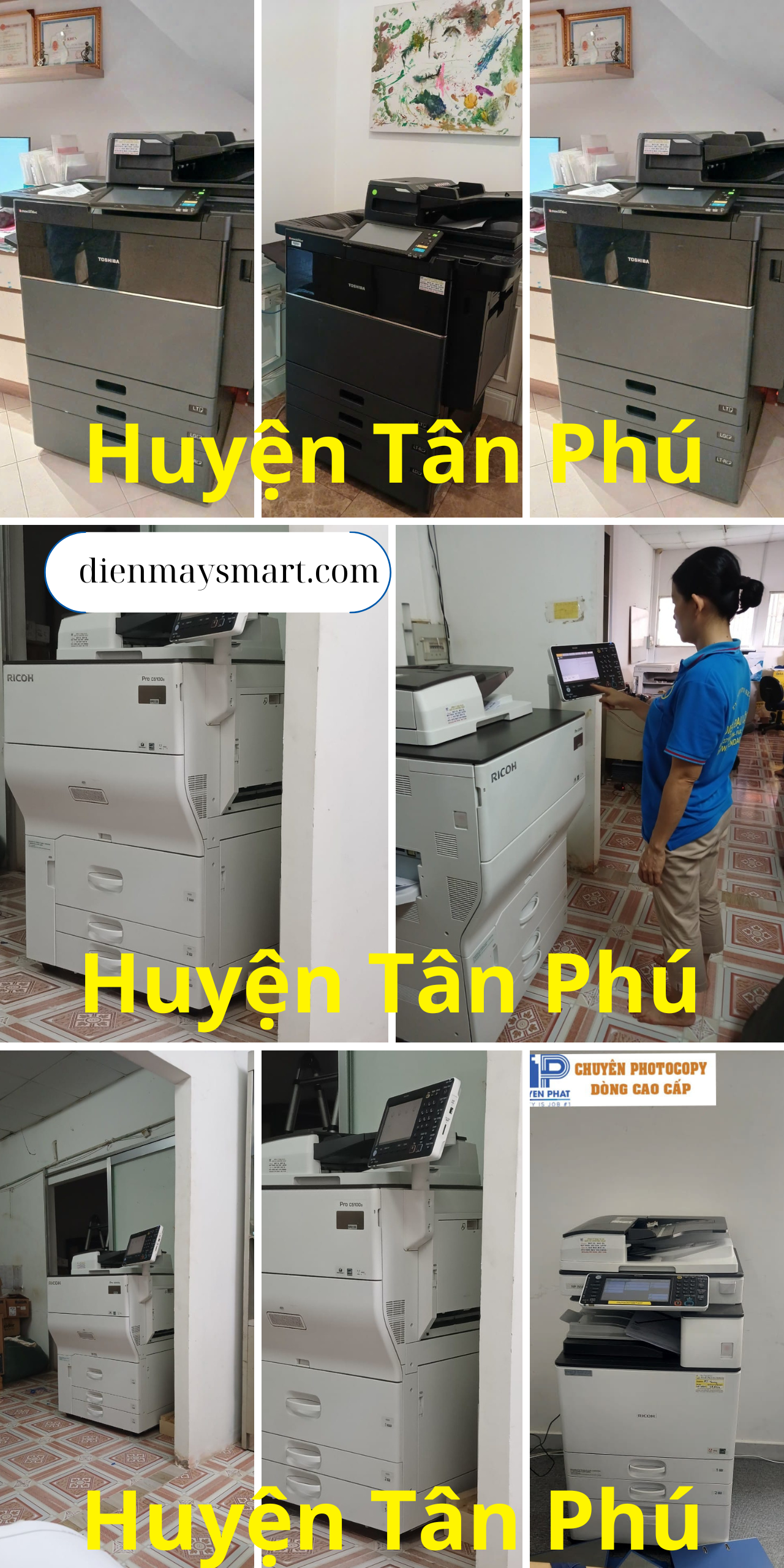 Bạn đang tìm kiếm dịch vụ cho thuê máy photocopy tại Quận Tân Phú? Hãy đến với chúng tôi - một trong những công ty hàng đầu trong lĩnh vực này. Chúng tôi chuyên cung cấp các dòng máy photocopy chính hãng như Ricoh, Toshiba, Canon, Xerox, Konica, Fuji, HP,... đảm bảo đáp ứng mọi nhu cầu của bạn.